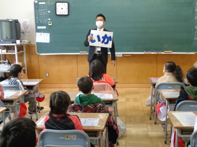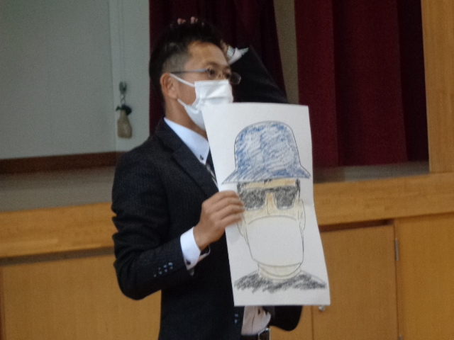 帯広警察署生活安全課の方を講師に、全校で不審者対応の防犯訓練を行いました。