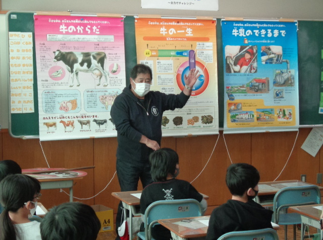 広瀬牧場の社長さんに来ていただき、酪農業についてのお話を聞きました。