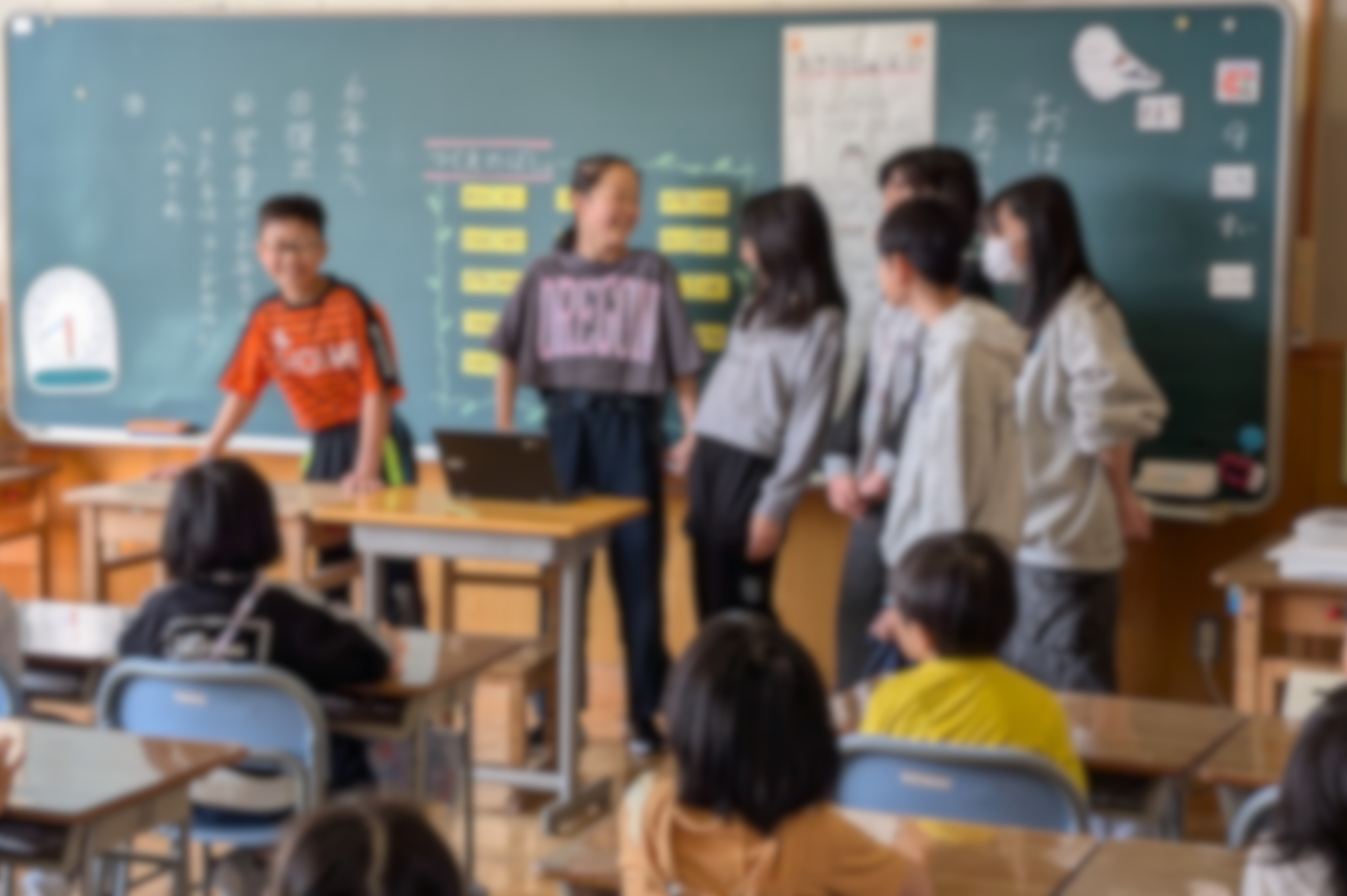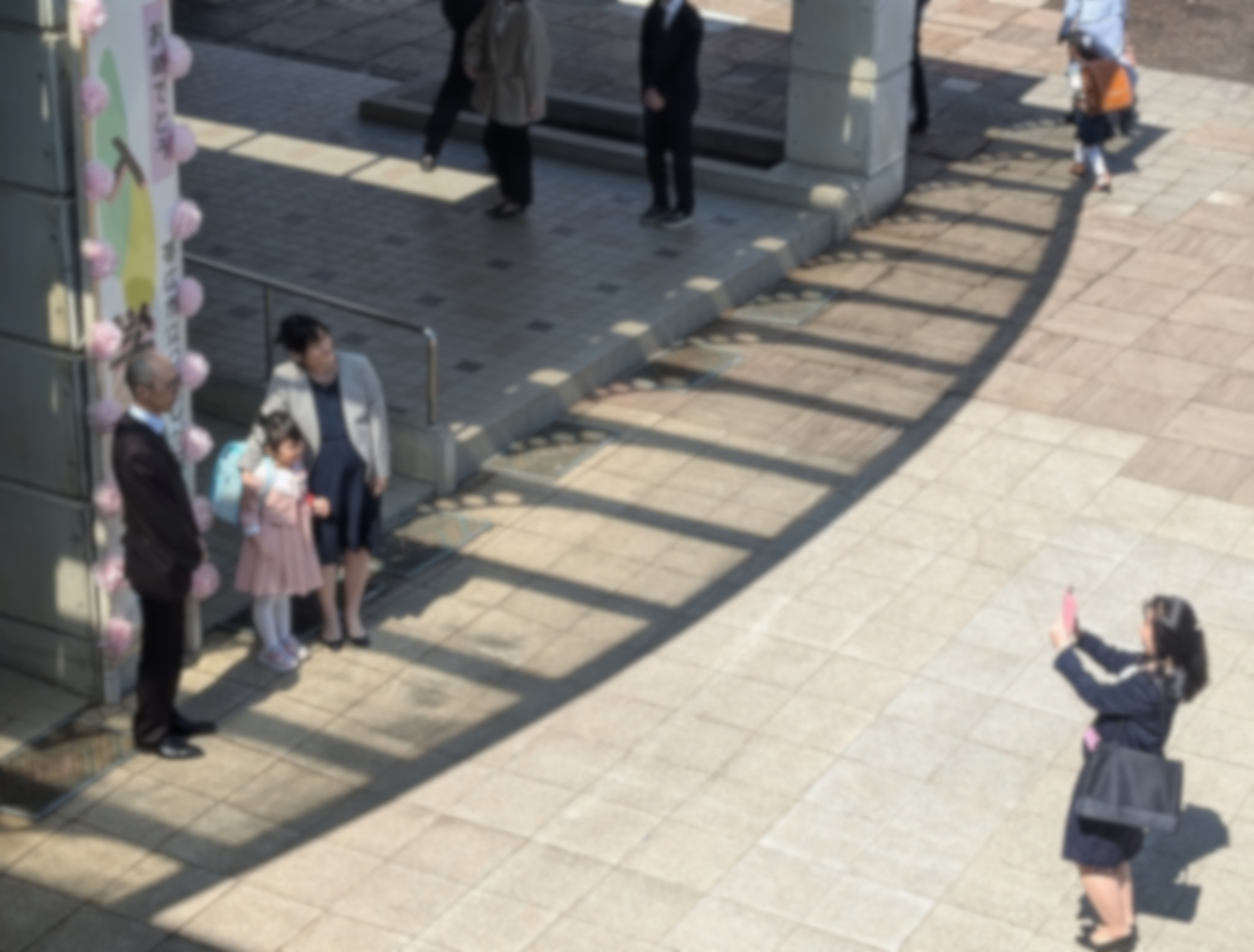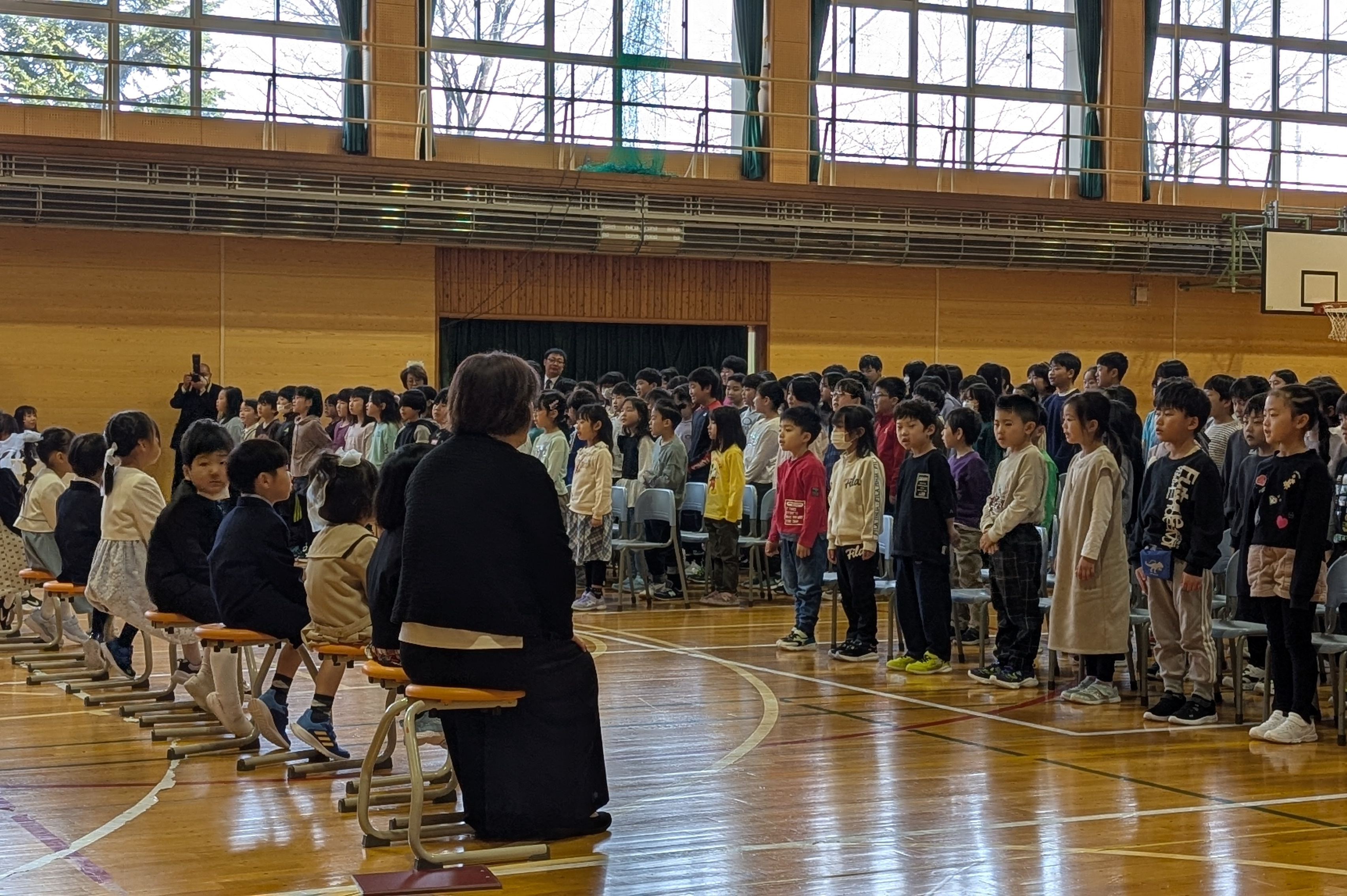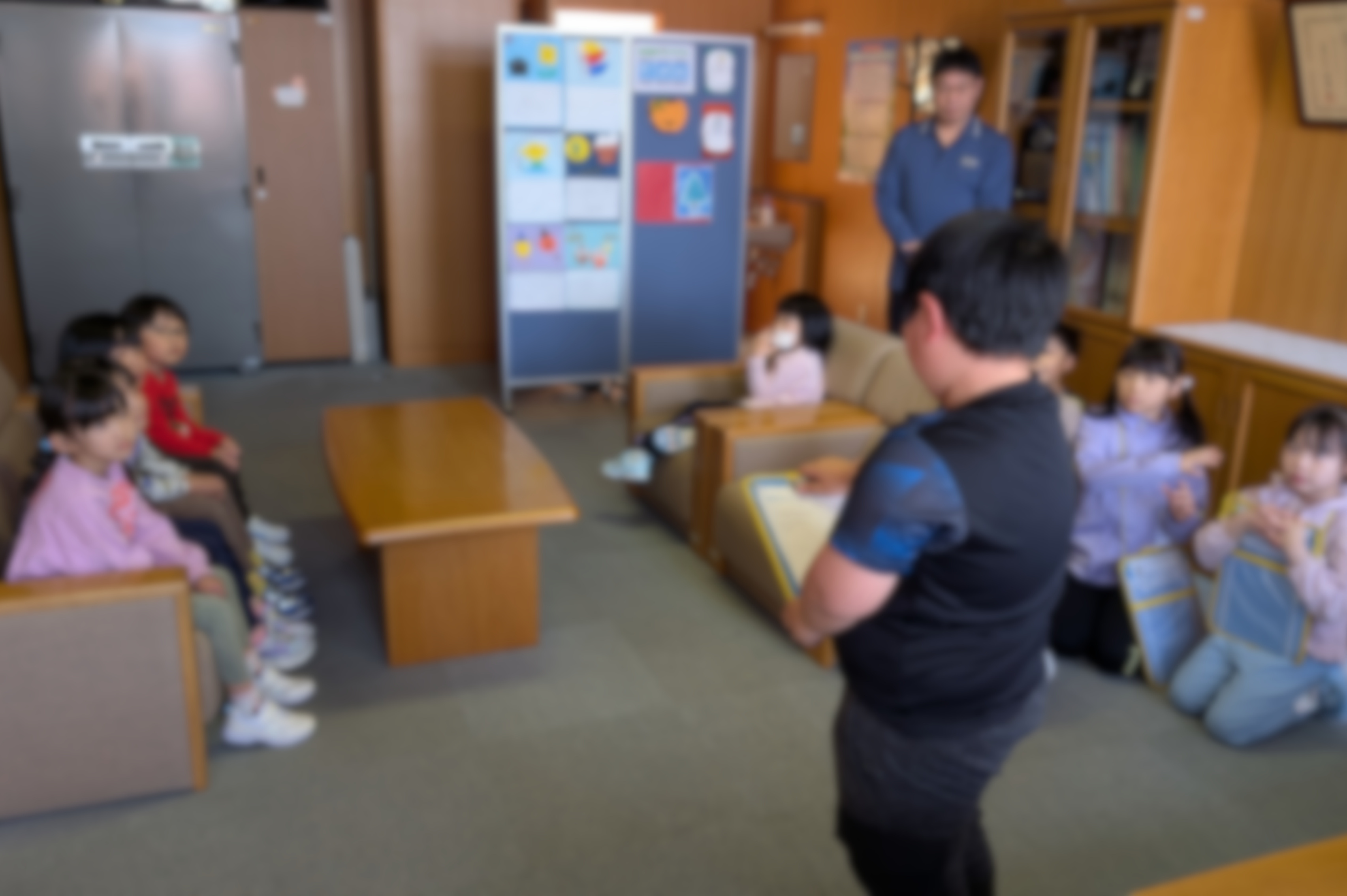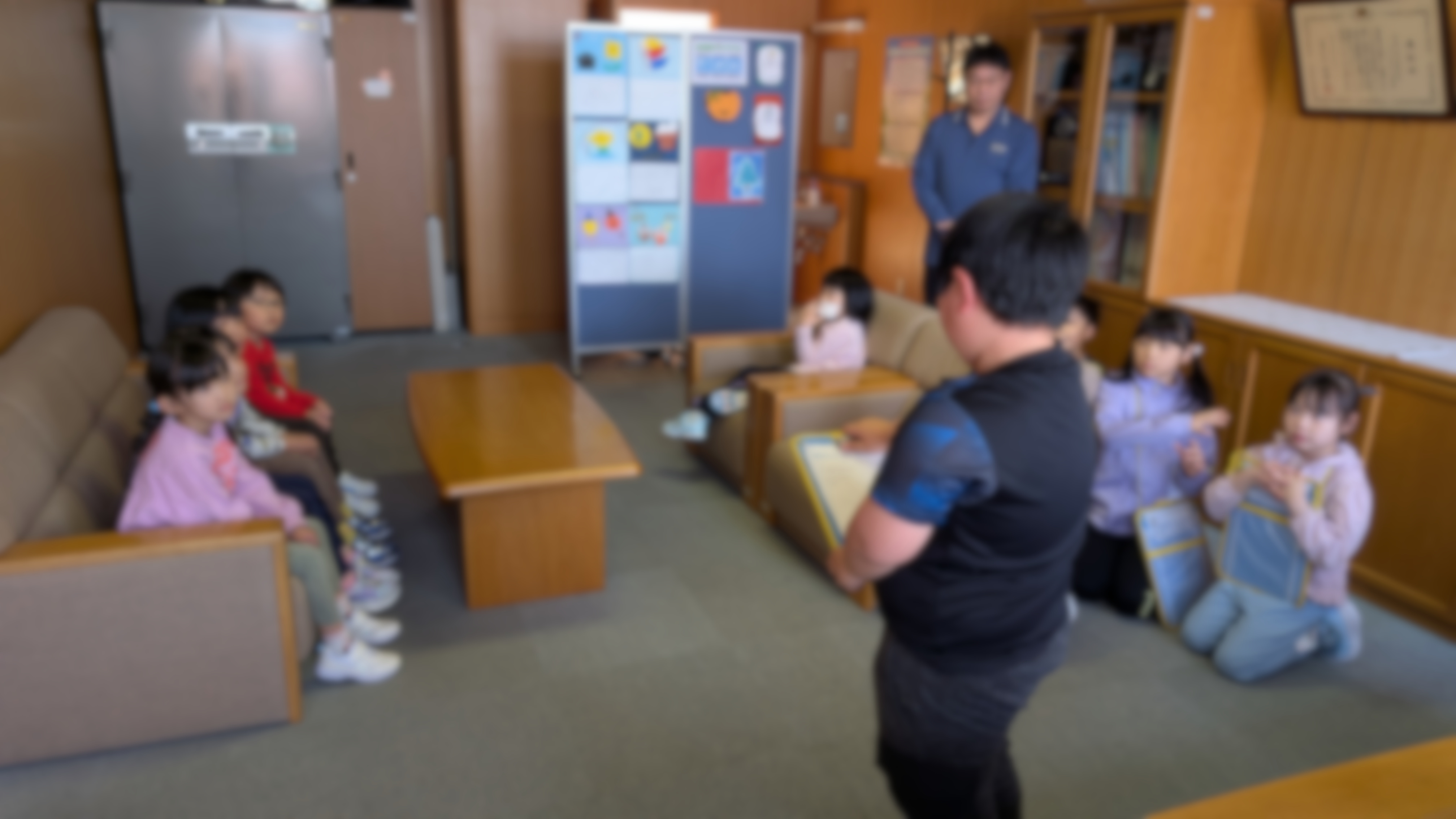 看板前での写真撮影です。つつじっ子クラブ見守り隊の皆さんがシャッターを押してくれました。
