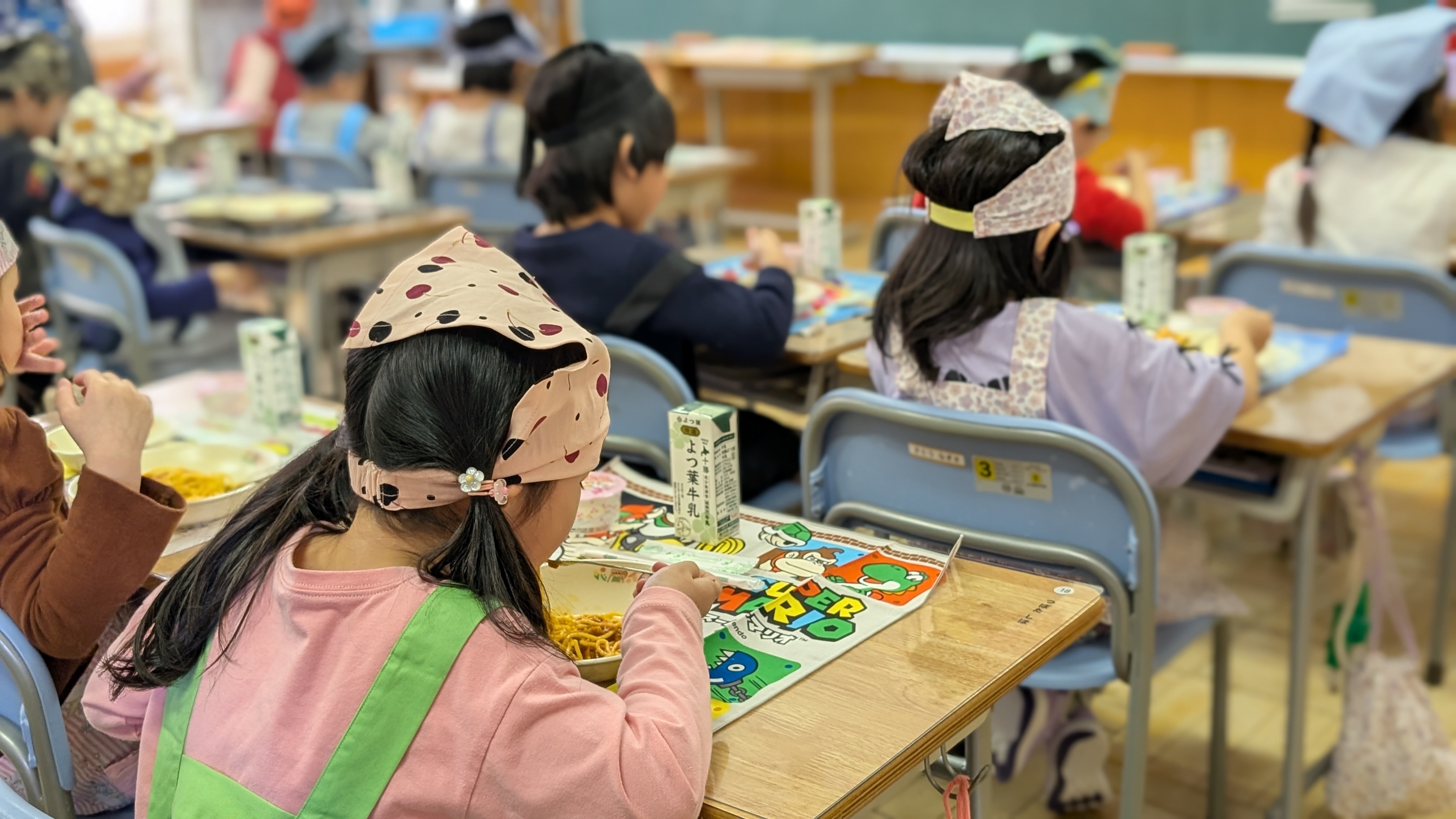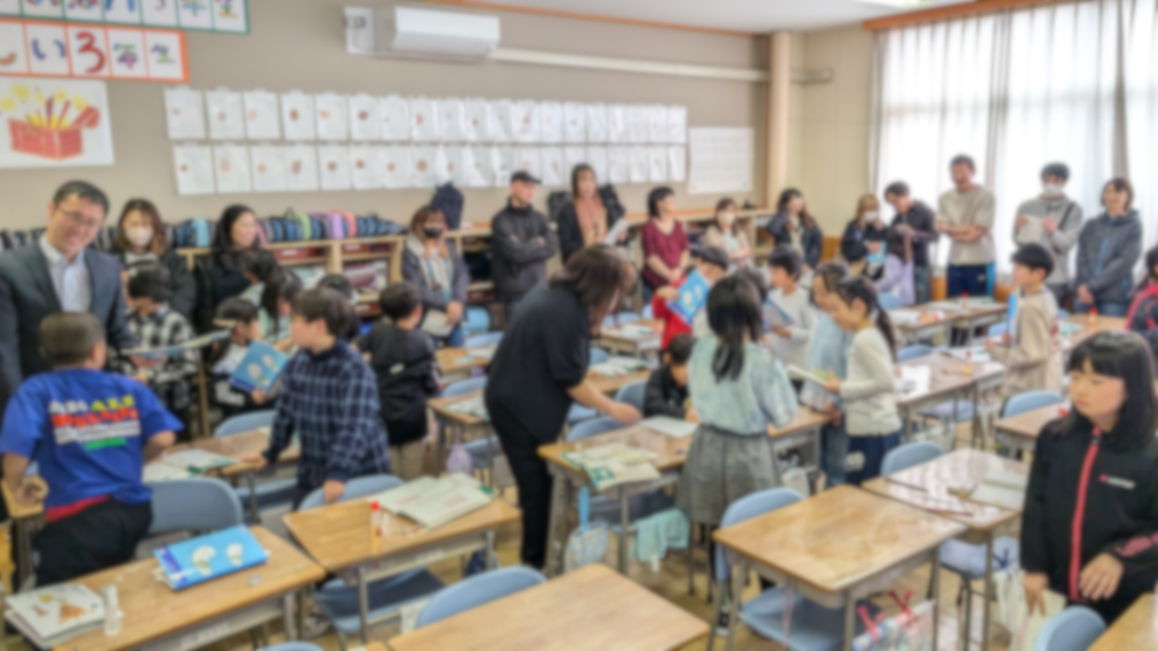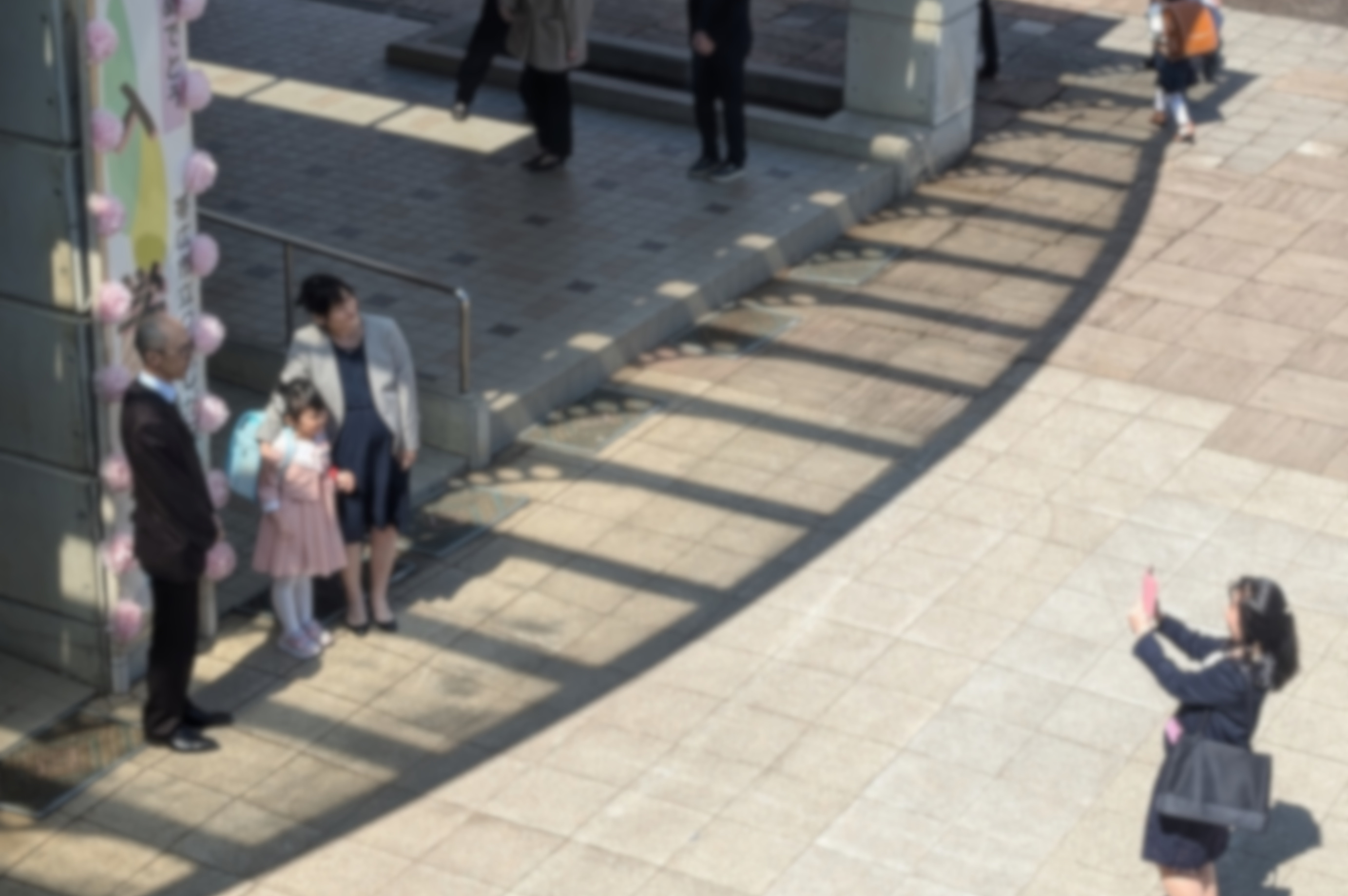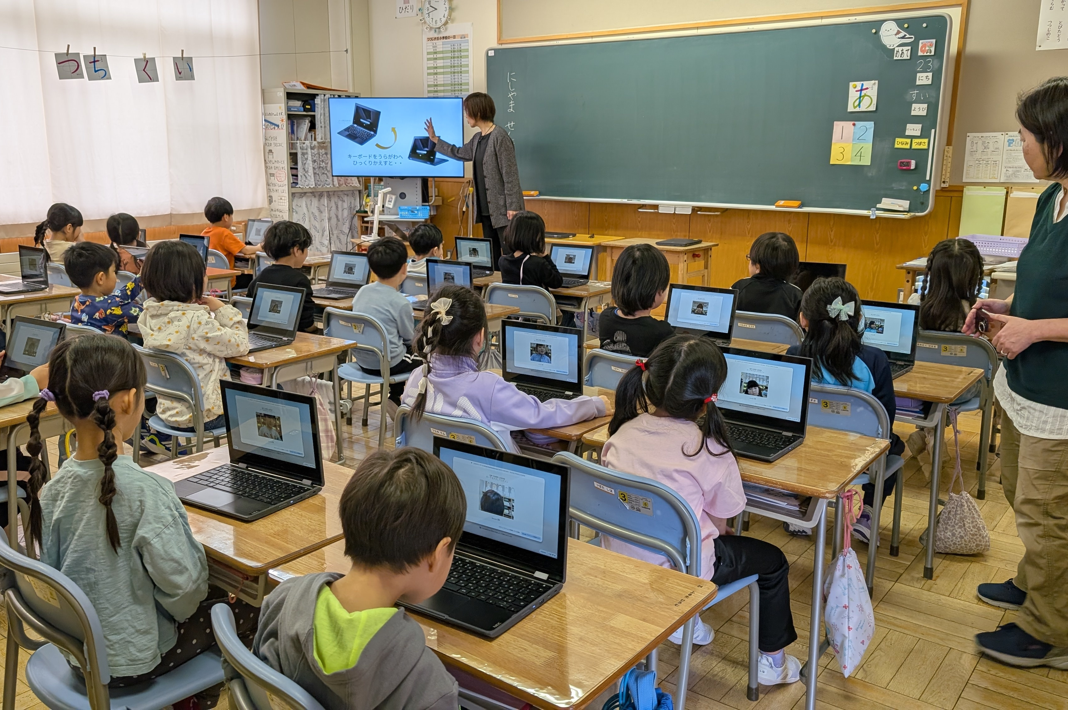 看板前での写真撮影です。つつじっ子クラブ見守り隊の皆さんがシャッターを押してくれました。