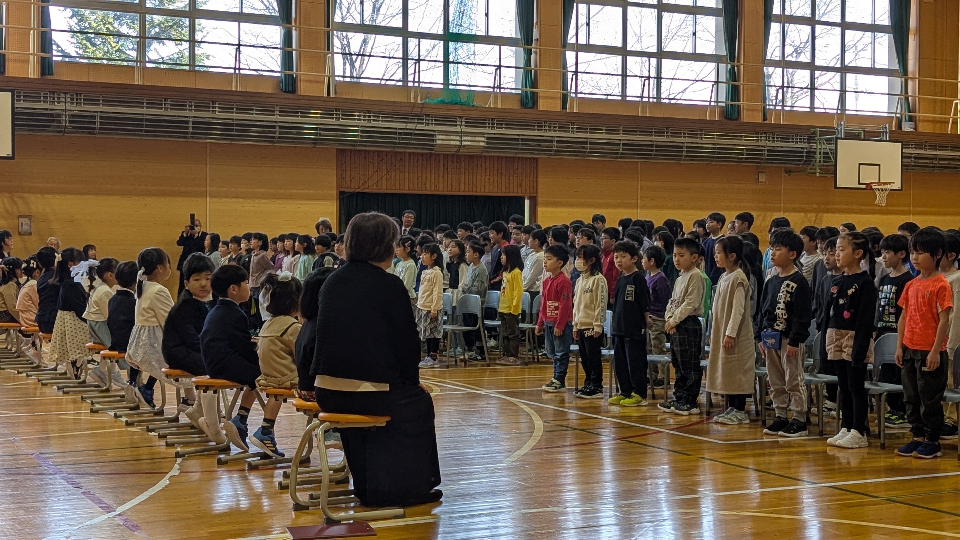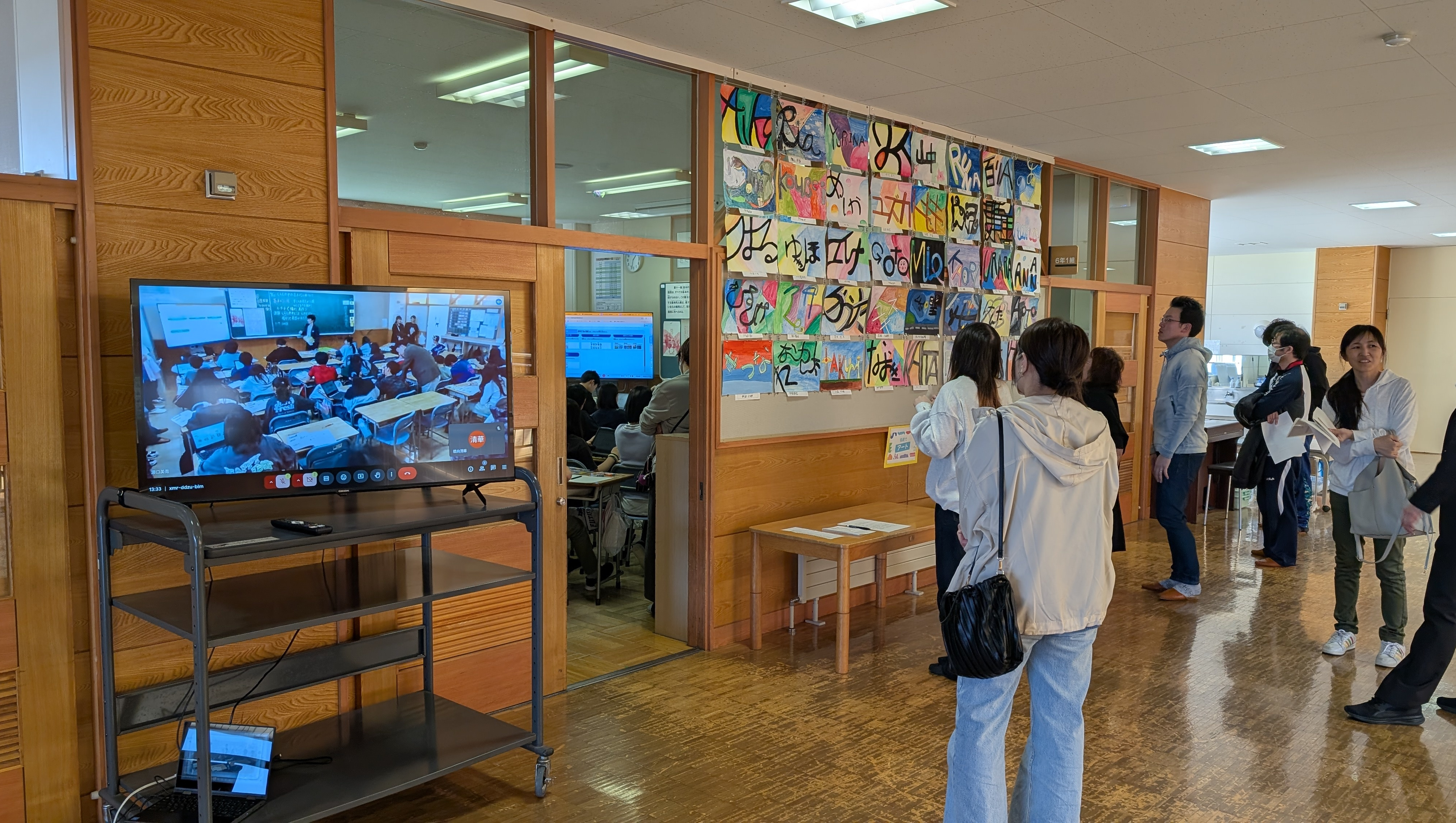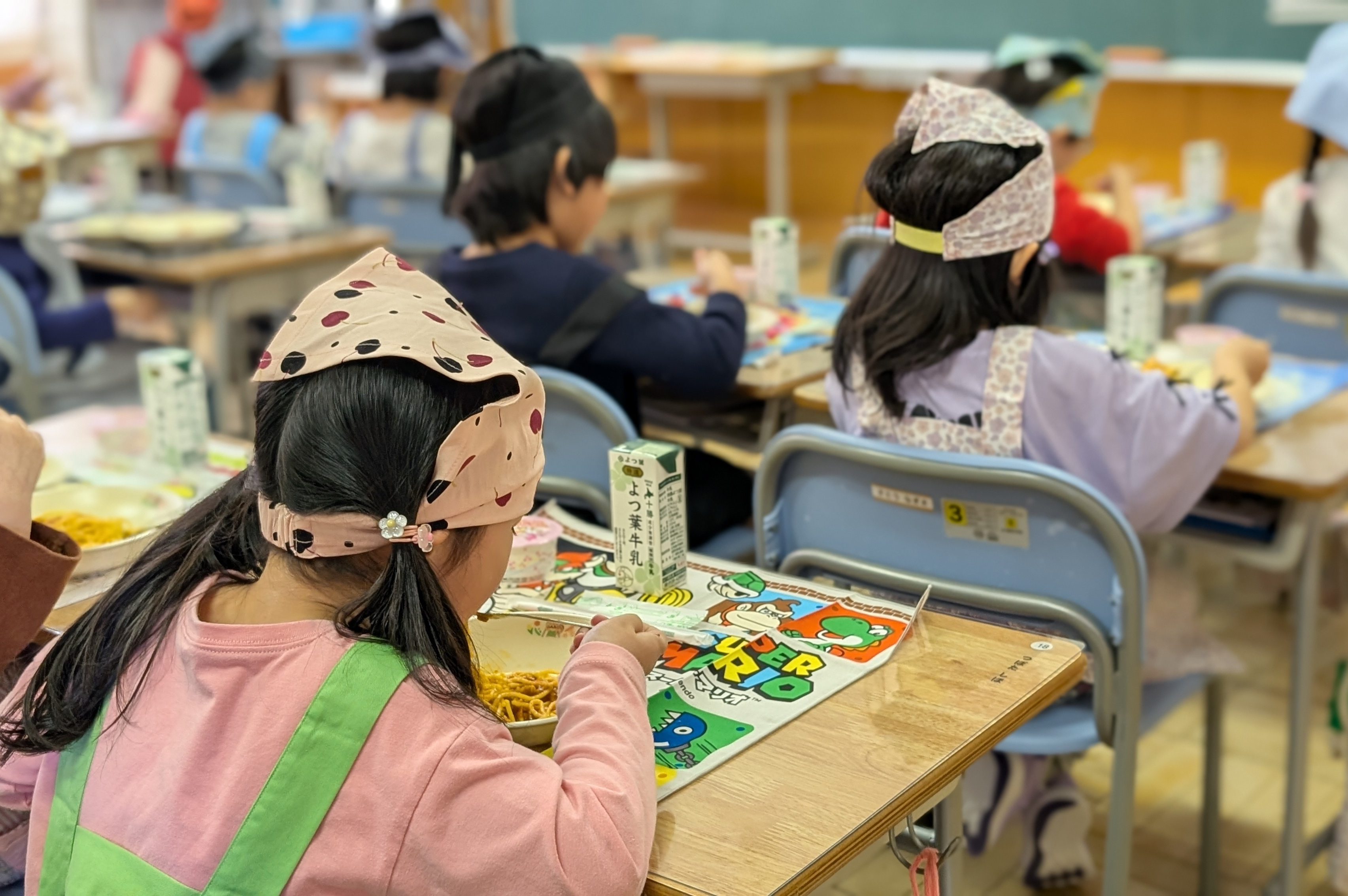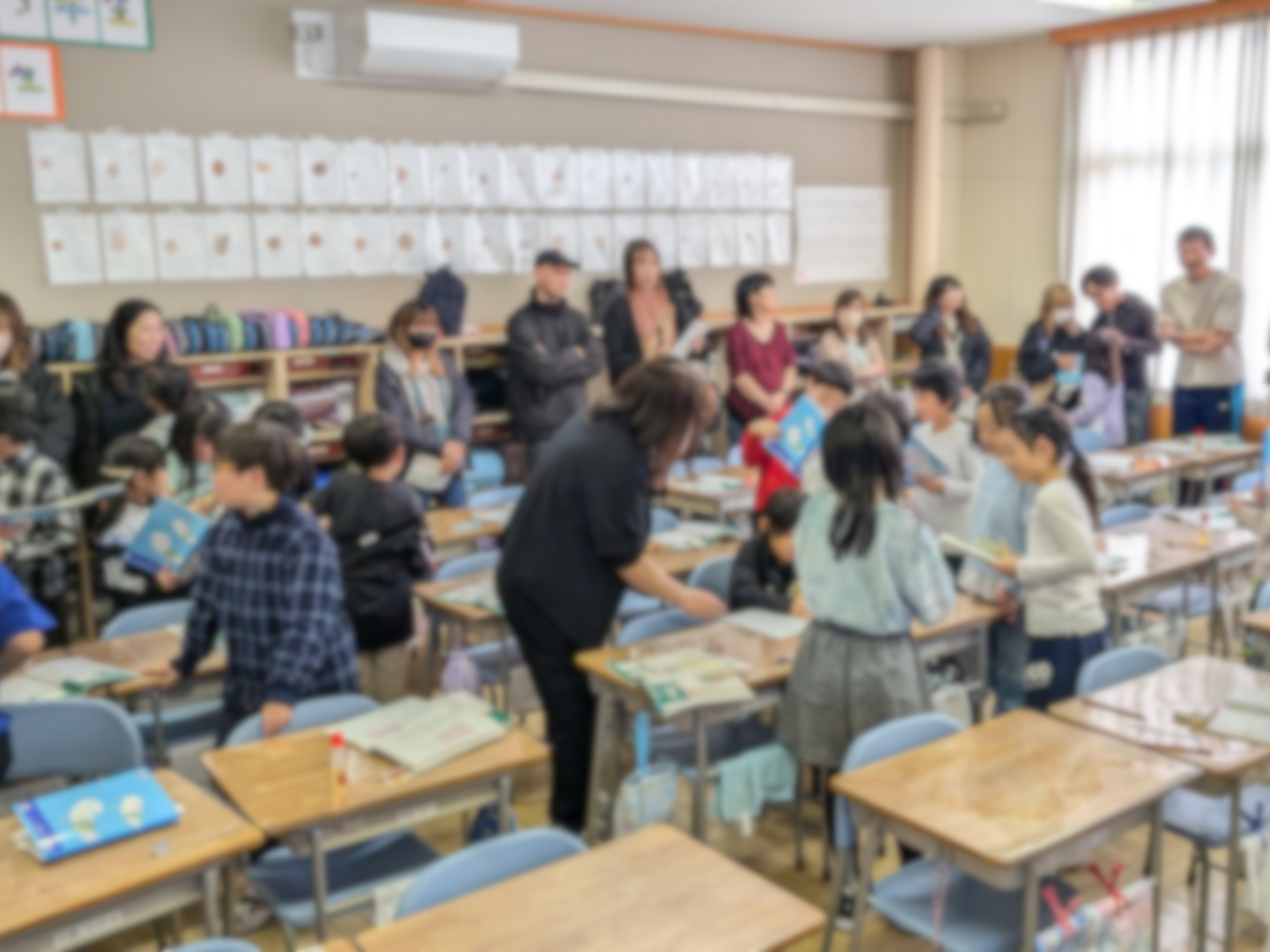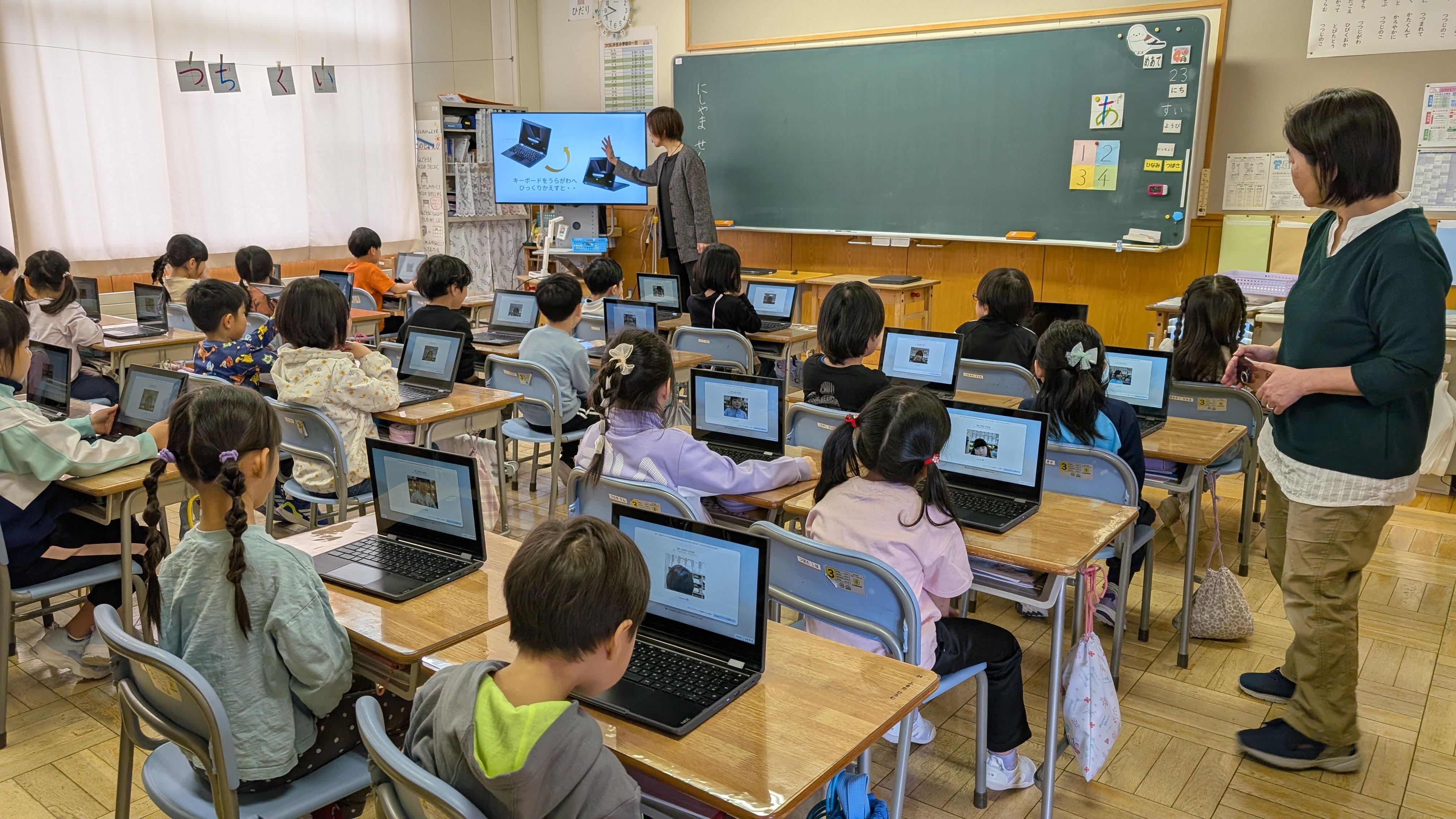 看板前での写真撮影です。つつじっ子クラブ見守り隊の皆さんがシャッターを押してくれました。